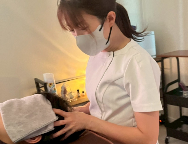 水やオイルを使わず、手技だけで頭皮を丁寧にほぐすドライヘッドスパ。固くなりがちな頭皮をゆるめることで、血行を促進し、眼精疲労や肩こり、睡眠の質の改善にもつながります。
